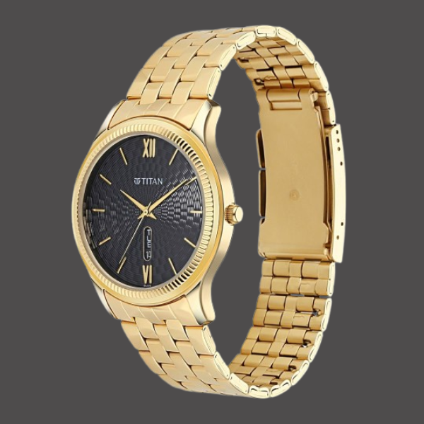 Step up your style with the Titan Quartz Analog Black Dial Watch for Men. Featuring a classic metal strap, bold black dial, and convenient day-date display this watch blends elegance, durability, and everyday sophistication.