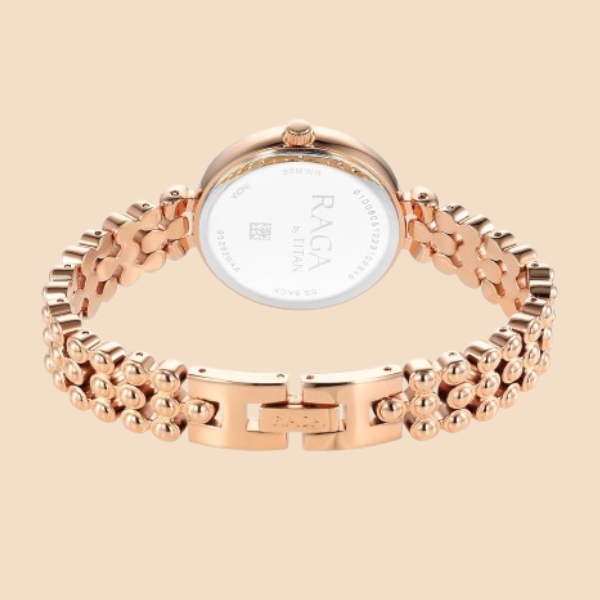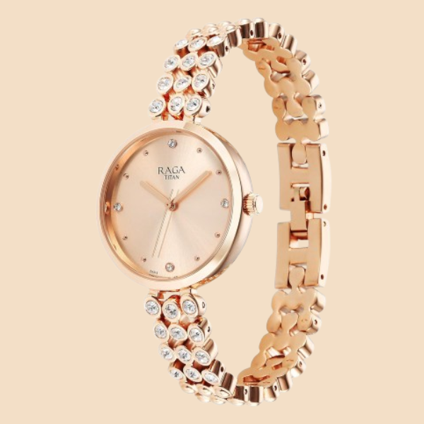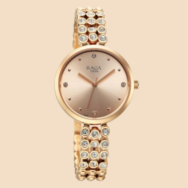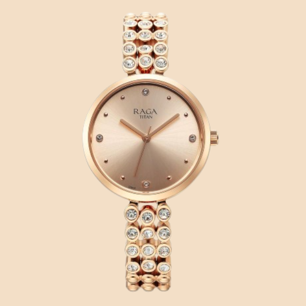 Shine with confidence wearing the Titan Raga Showstopper Rose Gold Dial Watch for Women. Featuring a luxurious rose gold metal strap, elegant analog display, and precise quartz movement this timepiece is made to turn every look into a statement of grace.